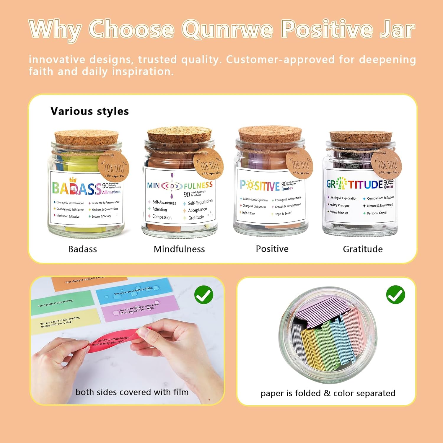 【Constructive Affirmation-Items for Each One】This jar is for everybody—as a result of all of us want a bit of extra encouragement.It is excellent for the hardworking scholar juggling exams and deadlines,looking for motivation to maintain going.It is best for the busy skilled navigating profession pressures,reminding them that their efforts do not go unnoticed.Dad and mom,academics,artists,caregivers—anybody who offers a lot to others and typically forgets to provide again to themselves will discover solace in these phrases