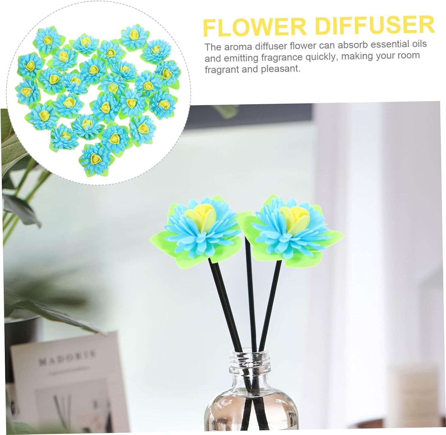Desk important oil diffuser–comes with enough flower diffuser to boost the aroma, beneficial to exchange it as soon as a month,aromatherapy flowers