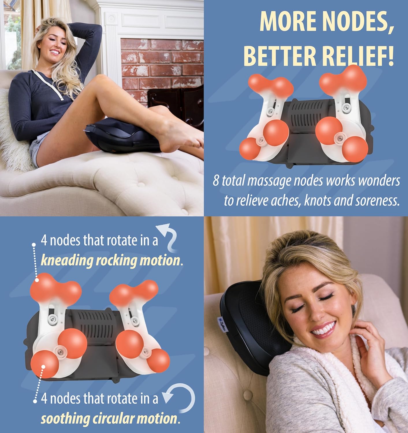 8 Deep Tissue Therapeutic massage Nodes: Ease sore and stiff muscle mass with 4 prime nodes that transfer up and down, 4 backside nodes that transfer in a round movement; Soothing kneading sensation penetrates via painful knots in your decrease again (lumbar); Not cordless